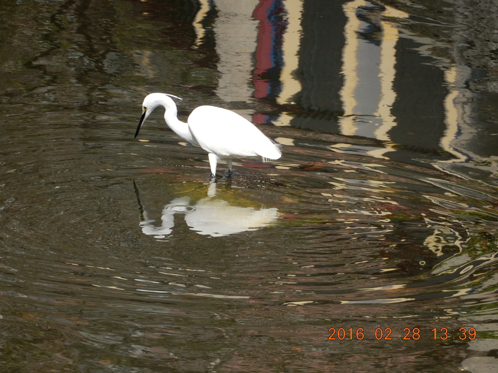 即使在都市的臭水溝,只要有食物可吃,也可以發現小白鷺(這條寬不到5公尺的排水溝裡有很多吳郭魚)。