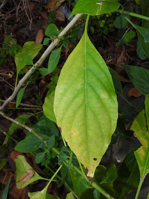 | 》 | 單葉,對生,紙質;橢圓形或卵狀橢圓形;基部楔形,先端短漸尖或急尖或偶稍鈍頭;全緣,邊緣略呈微波浪狀 | |